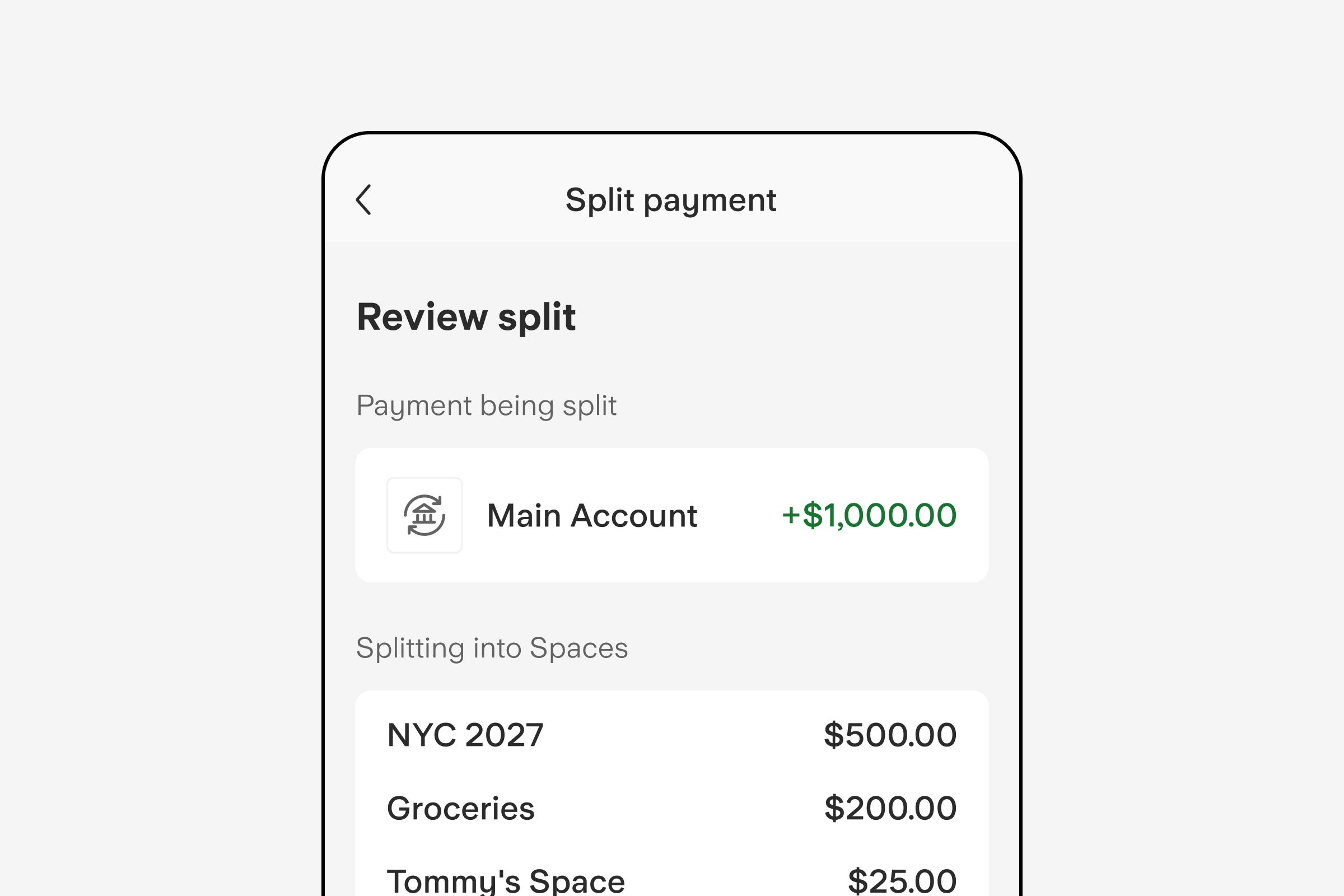 Empower customers to organize their finances by seamlessly splitting and directing payments across various sub-accounts and designated Spaces. These intuitive tools encourage better financial habits by allowing users to categorise their spending and automate their savings goals within a single interface.
